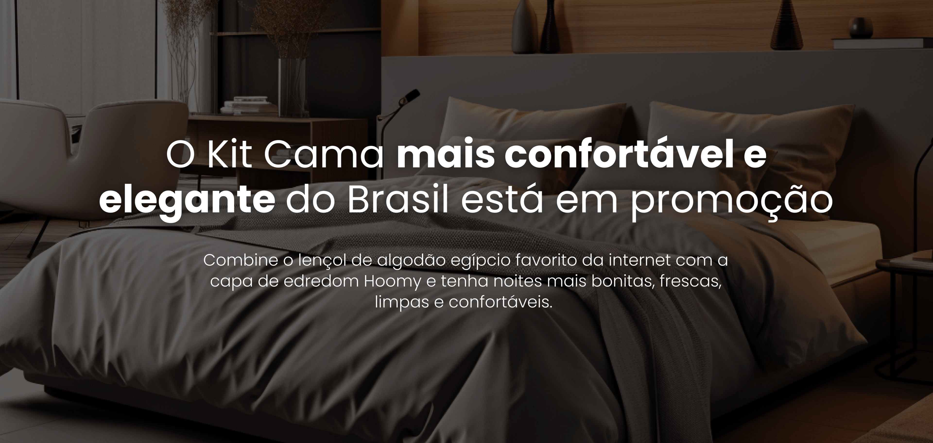 Ao unir o nosso querido Lençol Hoomy com a incrível Capa de Edredom Hoomy, você garante o combo perfeito de conforto, estética e praticidade — com um desconto especial que só o Kit Cama oferece.