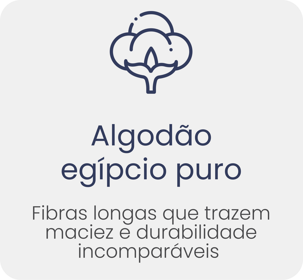 Feitos com algodão egípcio puro e tecelagem de alta performance, nossos tecidos respiram, duram mais e cuidam da sua pele enquanto você dorme. Um investimento inteligente para quem valoriza o bem-estar todos os dias.