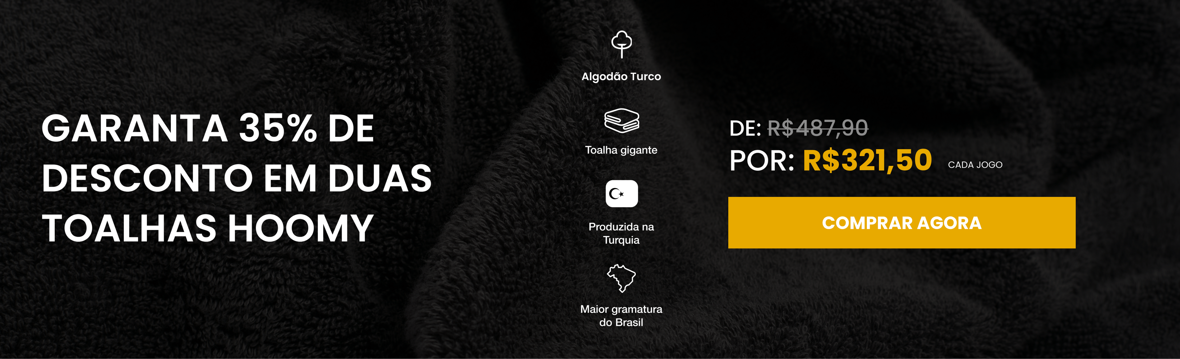 A Toalha Hoomy é feita de algodão turco, o melhor algodão no mundo para se produzir uma toalha.
