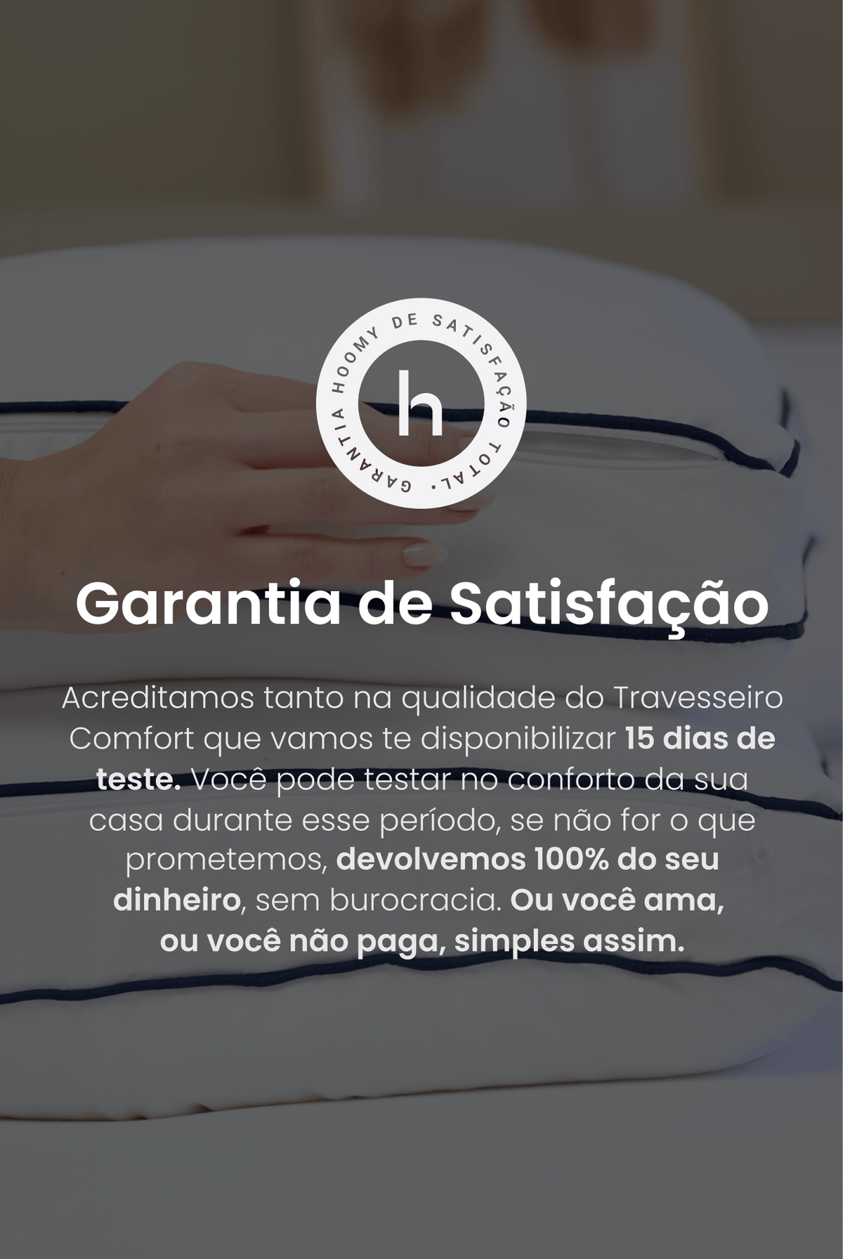 Você pode testar qualquer produto Hoomy no conforto da sua casa por 15 dias, se não for o que prometemos, devolvemos 100% do seu dinheiro!