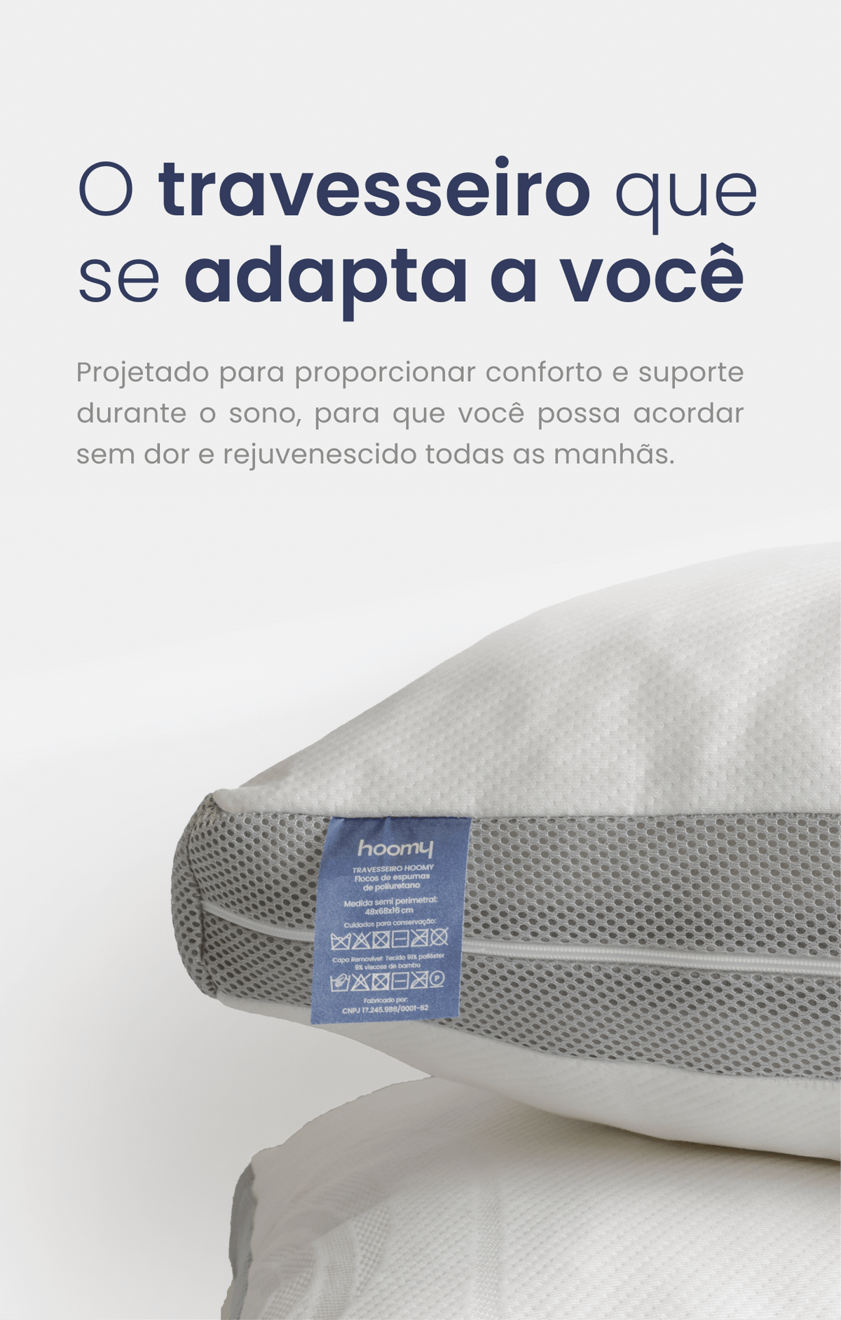 O travesseiro Hoomy utiliza um mix de espumas especiais de memória, proporcionando um equilíbrio ideal entre suporte e maciez.